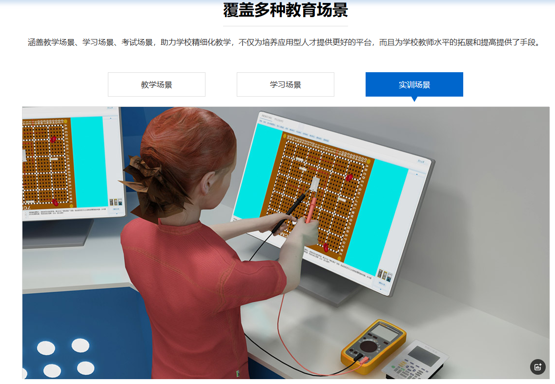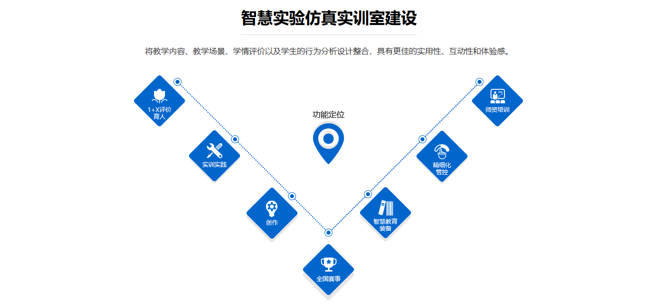 打造理论与实践融台的智慧实训平台,助力院校完善教育培训体系,对实训室进行信息化与互联网化改造升级,将现有各种教学实验/实训室的数字化和虚拟化,构建高度仿真的具有物理属性的虚拟实验环境和实验对象,支持师生在虚拟环境中开展实验,达到教学大纲所要求的教学目的。